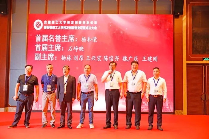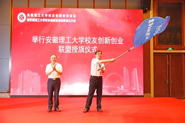 下午,校友创新创业联盟成立大会召开。会上,安徽理工大学校友总会宣读了《关于批准成立安徽理工大学校友创新创业联盟的决定》,全体参会人员审议并表决通过了《安徽理工大学校友创新创业联盟管理办法》。根据《安徽理工大学校友创新创业联盟管理办法》,大会推举杨和荣校友担任名誉主席,石峥映校友担任首届轮值主席;根据联盟主席推荐,杨林校友、刘昂校友、王兴宏校友、陈宿齐校友、魏广庆校友、王建刚校友当选为联盟副主席。郭永存为联盟授旗,联盟首届轮值主席石峥映校友到台前接旗。