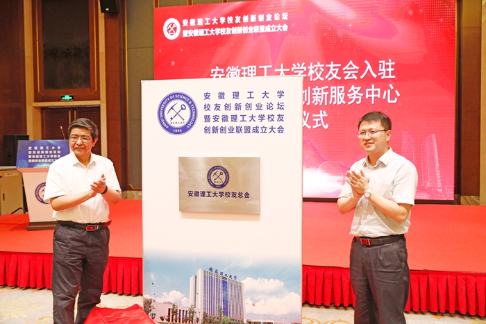 董雨和陈可科为安徽理工大学校友会入驻南京海外校友创新服务中心揭牌