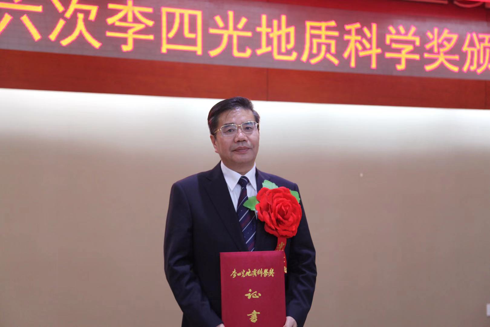 李四光地质科学奖是我国地质行业最高荣誉奖项,于1989年李四光100周年诞辰之际,由地质行业各部门共同发起,经中央批准而设立。此奖专门奖励在野外地质工作、地质科技研究和地质教育等工作中作出突出贡献的地质工作者,每两年评选一次,每次获奖者不多于15人,获奖者一生只能被授予一次并作为终身荣誉奖。本次在李四光诞辰130周年之季,授予15人“李四光地质科学奖”。