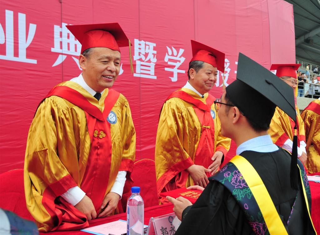 2019届全体毕业生及应邀到校的毕业生亲友团,机关部门主要负责人,各学院领导班子成员和导师团成员,教师代表,非毕业班学生代表参加了毕业典礼暨学位授予仪式。