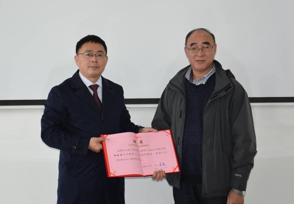 11月19日上午,学校在舜耕楼629会议室举行聘任仪式,聘请97届校友、大地工程开发(集团)有限公司副总裁母长春为我校兼职教授。