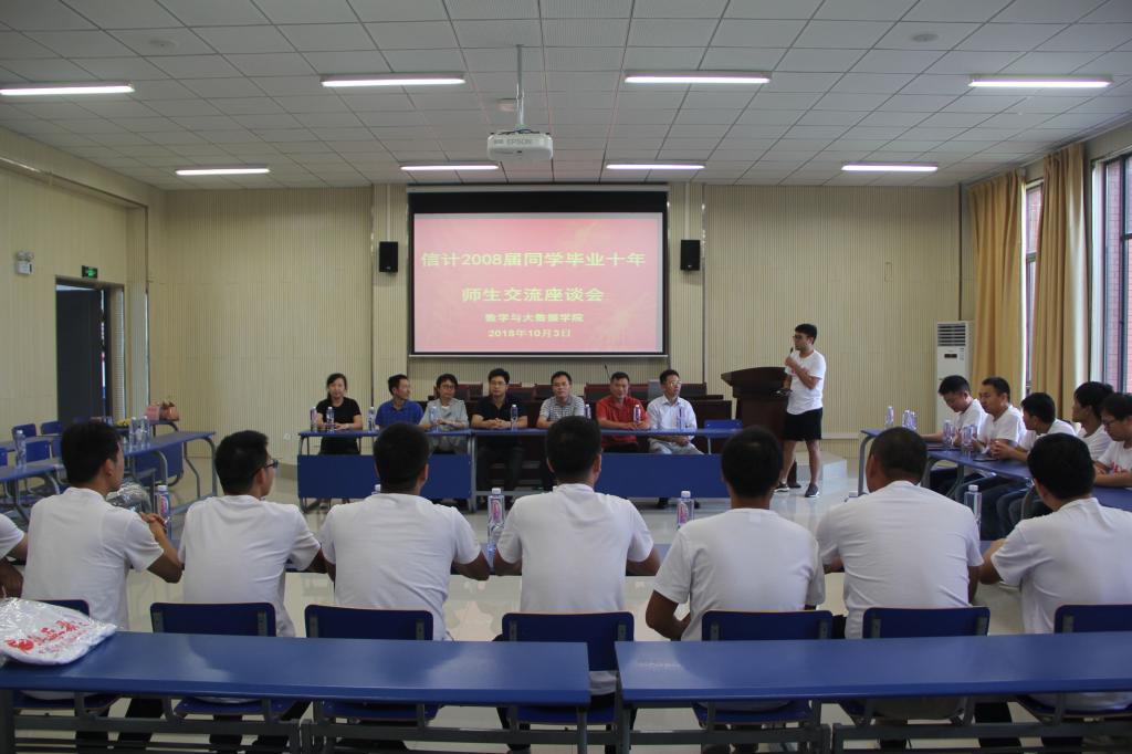 10月3日,数学与大数据学院信息与计算科学专业08届4班26名毕业生返校聚会。校友们从全国各地齐聚阔别十年之久的母校,参加学院为校友举办的师生座谈、校园参观等丰富多彩的活动。院党委书记冯定昌、院长方贤文等领导及其他任课老师代表应邀参加了在学院报告厅举办的师生座谈会。