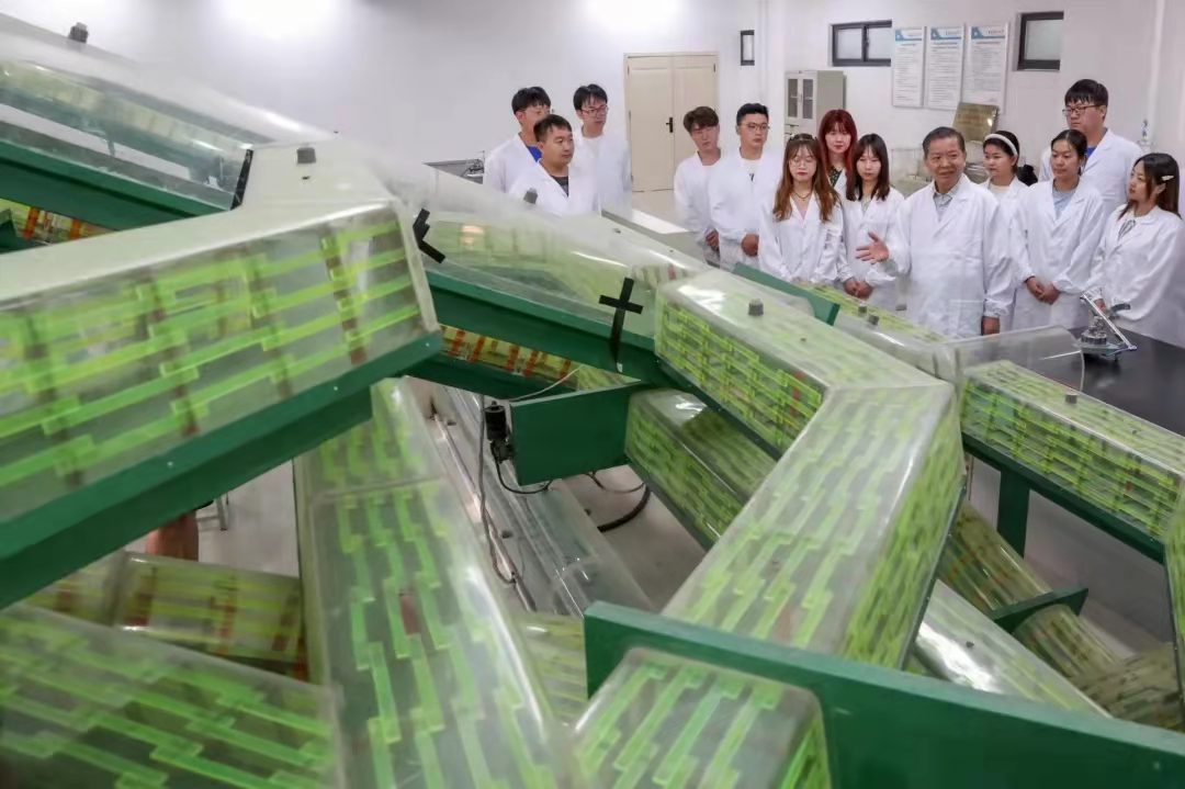 袁亮院士为学生讲解双滚筒采煤机滚筒截齿切割原理和一次采全高工艺技术。
