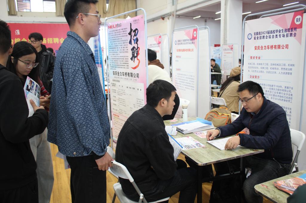 金秋送岗,梦想启航,10月26日上午,“人才兴皖、‘就’在江淮”安徽省2025届高校毕业生省级系列就业招聘会综合类专场招聘会在学校自强体育馆隆重举办。校党委书记郭永存,校党委常委、副校长董雨到现场与用人单位代表亲切交谈,深入了解用人单位招聘需求和学生求职情况,听取用人单位对学校人才培养、专业建设、实习就业等方面的意见和建议,并对企业长期以来对学校就业工作的支持表示衷心感谢。