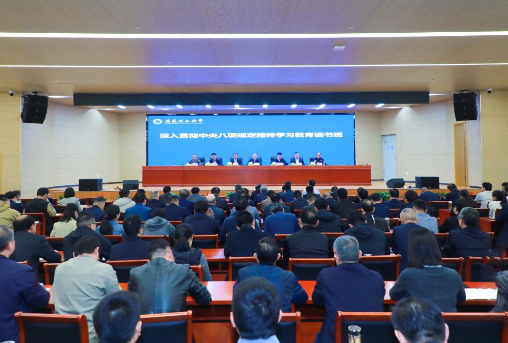 4月7日至8日,学校党委举办深入贯彻中央八项规定精神学习教育读书班。校党委书记郭永存主持开班式和集中交流研讨暨党委理论学习中心组学习(扩大)会议并讲话。校领导余玉刚、董雨、鲁超、王献余、王先江、张平松等出席。